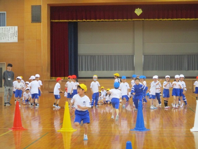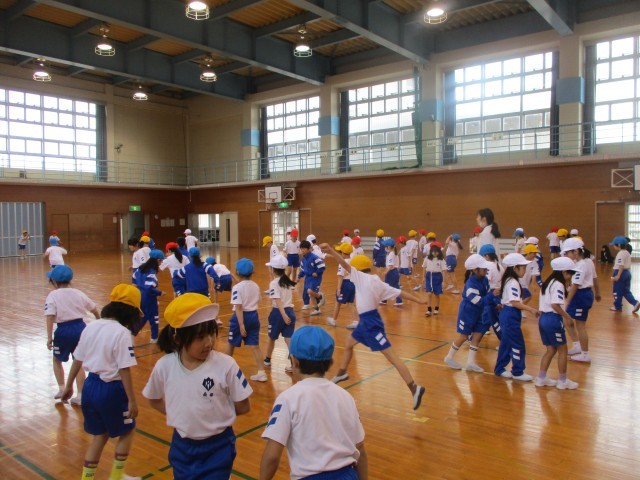 今日の体育科では、線の上だけを走ったり歩いたりしながら、友達とじゃんけんをして楽しく体を動かしました。後半は、色団のグループに分かれて、じゃんけんを使ったリレーをしました。じゃんけんに勝っても負けても最後まで全力で走る姿が素敵でした!