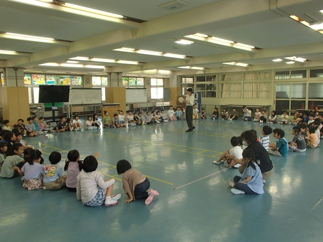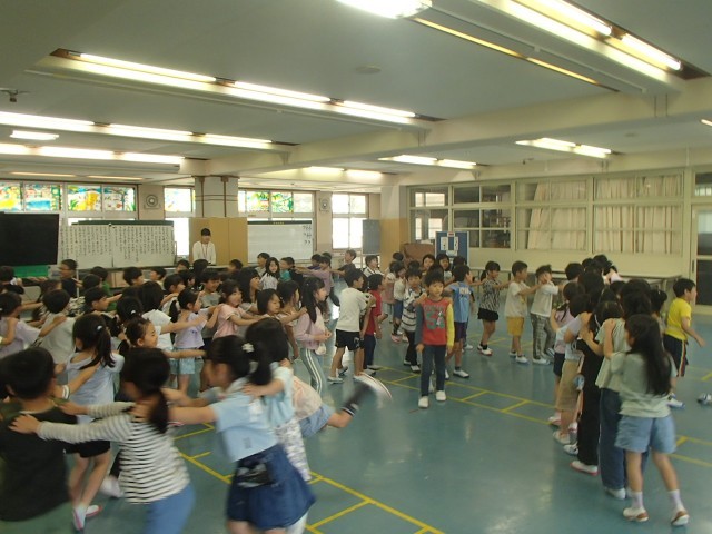 今日の2時間目に学年で音楽の学習を行いました。授業ではみんなで声をそろえて歌ったり、じゃんけん列車をしたりするなど、クラスの壁を越えて仲を深めました。