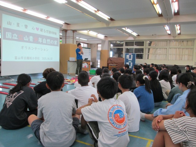 来週の宿泊学習に向けて、国立立山青少年自然の家の方を講師にお招きし、施設の使い方や森の遊び場作りの活動の仕方等を教えていただきました。