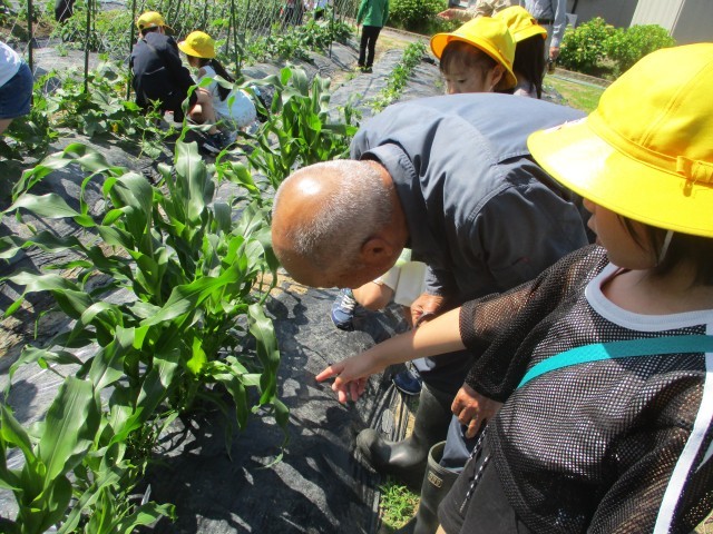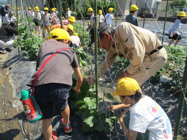 その後、畑では横に伸びたツルをネットに巻き付けたり、脇芽を摘んだりする作業を手伝ってくださいました。そうする理由も伝えてくださって、子供たちも「へ~」と言いながら説明を聞いていました。