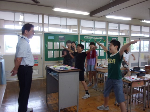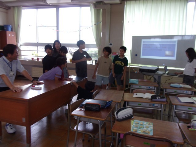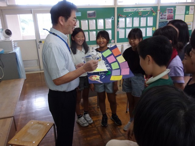 1学期最後の理科の授業でした。理科を担当してくださった先生が、朝日小学校での勤務を1学期で終えられることになり、5年生の子供たちは感謝の気持ちを伝える集会を企画しました。5年生で学習した理科の内容をクイズにして対決したり、感謝のメッセージやエールを送ったりしました。感謝の言葉を伝える時には、じっくり観察したことやこれまでに学んだことから自分の仮説を立てたり、予想したことや自分の考えたことをノートに書いたりする力がついたと自信をもって伝える子供たちでした。