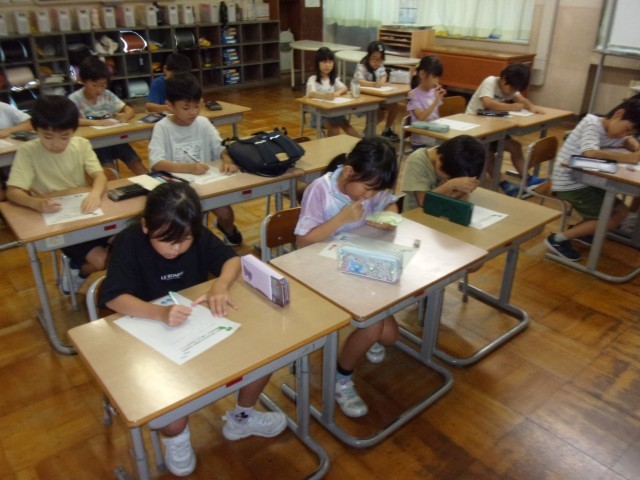 夏休みの思い出を話し合ったり、各自持ってきた自由研究を見合ったりと友達と楽しそうに過ごしていました。