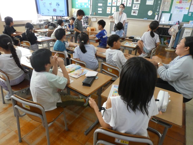 9月17日(水)3年生 外国語活動 公開日 2025/09/18 更新日 2025/09/18 3年生 初めてのスモールトークで友達と会話を楽しみました。好きな動物を互いに聞き合って、目を合わせて笑顔で話したり、相手の答えを聞いてリアクションをしたりすることができました。 3年生