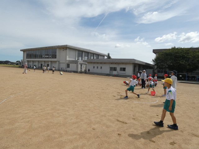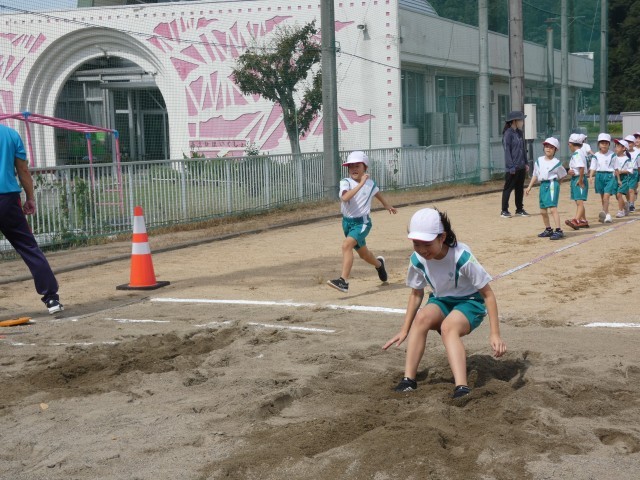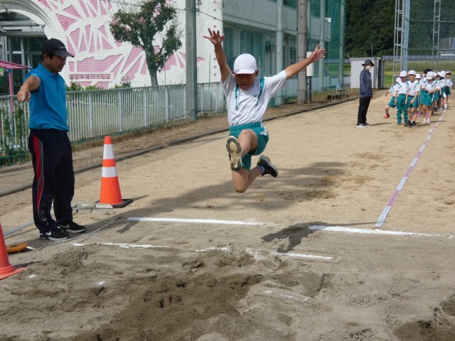 全校で陸上記録会練習を行いました。走り幅跳びでは、踏切までの歩数を合わせ、着地の砂の感触を確かめながら飛んでいました。ソフトボール投げでは、自分の記録を確認し、晴れた空に向かって遠く高く投げていました。