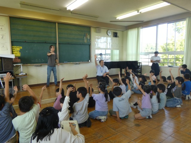 9月26日(金)1・2年生 ジョナサン先生の外国語活動 公開日 2025/09/26 更新日 2025/09/26 朝日小学校NEWS ジョナサン先生の外国語活動を行いました。歌やゲームでアルファベッドに親しんだり、夏休みにしたことを尋ね合ったりして、みんなで楽しく活動できました。 1年生 2年生 朝日小学校NEWS