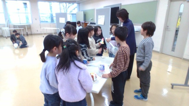 12月22日(月) 1年生と一緒に遊ぼう! 公開日 2025/12/22 更新日 2025/12/22 2年生 今日は、生活科の学習で自分で作ったうごくおもちゃを1年生と一緒に遊びました。 各自、おもちゃの使い方を教えたり、実演したりしながら紹介し、1年生に使わせてあげていました。 1年生からは、「楽しかった」「特に、びゅんびゅんカーが面白かった」など、2年生にとって嬉しい感想をもらうことができました。 1年生 2年生