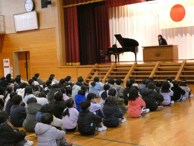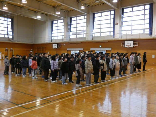 1月8日(木)3学期 始業式 公開日 2026/01/08 更新日 2026/01/08 学校行事 転入生を迎え、3学期の始業式を行いました。校長先生から、チーム朝日の一員として、3学期も挑戦することや頑張っている人を応援することで一人一人がレベルアップできることや卒業に向かっている6年生との時間を大切にしましょうとお話がありました。校長先生と目をつないで、姿勢よく話を聞いている姿が立派でした。 本年も朝日小学校をよろしくお願いいたします。 学校行事