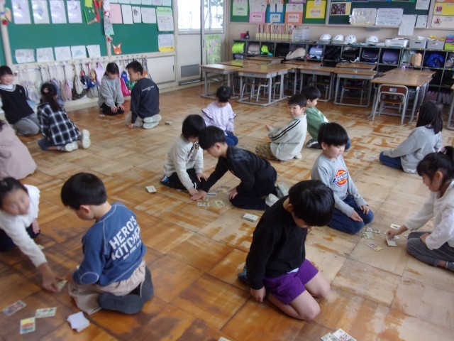1月9日(金)1年生 朝日カルタ予選 公開日 2026/01/09 更新日 2026/01/09 1年生 3学期が始まりました。1年生は、今日から朝日カルタ大会の予選に取り組んでいます。2学期の練習試合とは違い、真剣な雰囲気の中、1対1の勝負をしました。勝ったり負けたりしましたが、結果を受け止めて「ありがとうございました」と相手に伝える姿が立派でした。来週も、真剣勝負で予選会に取り組んでいきます。 1年生