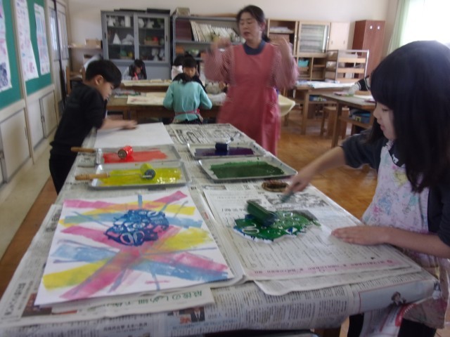図工室で版画をしました。