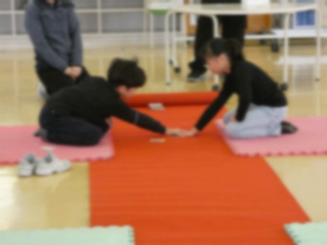 詠み上げられるとすぐに札を取り合う姿に、たくさんの朝日っ子が息を呑んで見守ります。