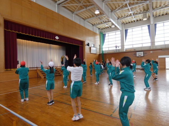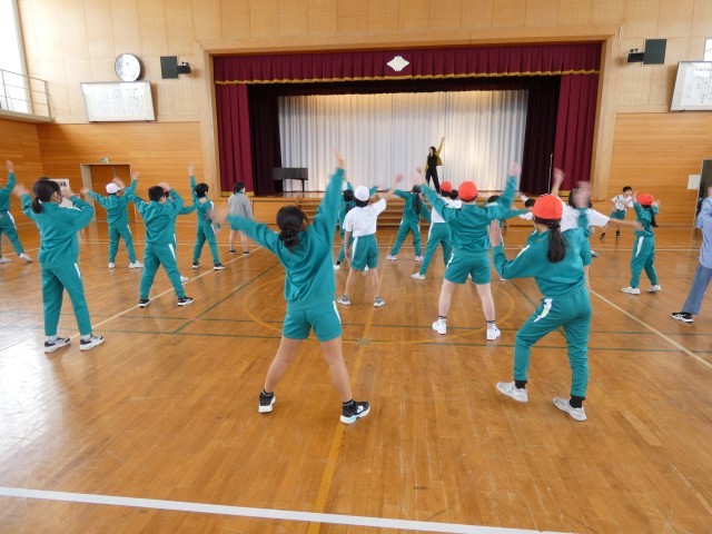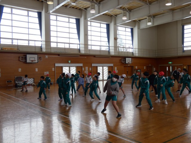 1月26日(月)上学年 体育教室(ダンス) 公開日 2026/01/26 更新日 2026/01/26 学校行事 下学年の次に、上学年がダンスをしました。 姿勢をよくして体を滑らかにひねったり、速いテンポでターンをしたり、ワンテンポずつ丁寧に教えていただきながら、少し難しい動きにも挑戦しました。 途中に自分の好きなポーズも取り入れ、音楽に合わせて楽しく踊っていました。 寒い中、ご来校いただきありがとうございました。 4年生 5年生 6年生 学校行事