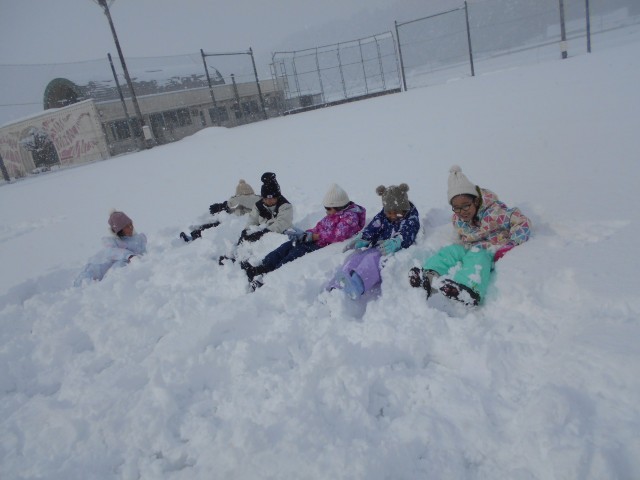 2年生で集会を開いたり、1・2年生で雪遊びをしたりしました。