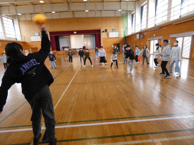 2月27日(金)卒業を祝う週間 交流遊び4・6年生 公開日 2026/02/27 更新日 2026/02/27 朝日小学校NEWS 今日は、4・6年生でドッジボールをしました。 赤白団対抗で、4年生も6年生も本気で投げ合い、ほぼ互角の試合になりました。よいプレーが見られたときは、拍手をして仲間を称え、4・6年生の絆が表れていました。 あっという間の2試合が終わり、「4年生とパスを回して協力してできてよかった」、「6年生といい思い出ができた」と振り返りました。 +2 4年生 6年生 朝日小学校NEWS
