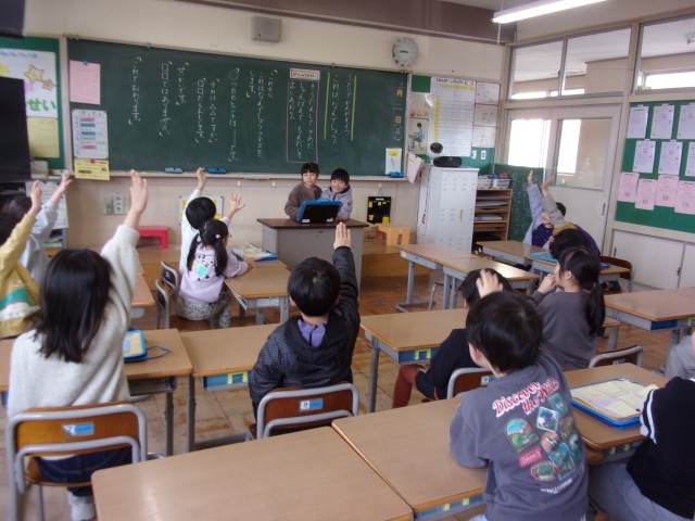ペアの友達と何度も練習したおかげで、上手にクイズを出題することができました。