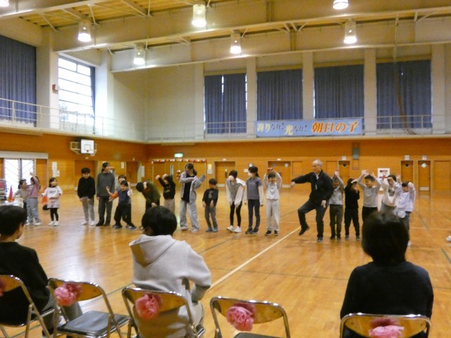 4・5年生は、6年生一人一人になりきり紹介劇をしました。朝日小学校のリーダー6年生の個性豊かで素敵なところを改めて実感できました。