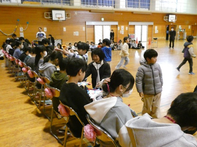 最後に6年生から「みんなが企画してくれて、今までありがとうと言ってもらえて嬉しかった。中学校でもがんばります。」「これからは5年生を頼りにしてがんばってください。」と感謝の気持ちとエールが述べられました。