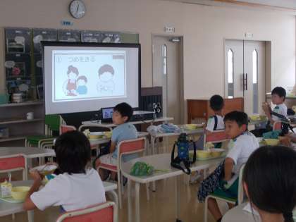 6月22日(火) プール開きに向けて オンラインによる保健指導 公開日 2021/06/22 更新日 2021/06/22 朝日小学校NEWS 給食時間に、オンラインで、養護教諭から水泳学習の際の保健指導を行いました。 けがの防止のために、 1 つめを切ること 2 朝食をしっかり食べること あと2つ、大切なことを言われましたね。覚えているかな。 約束を守って、安全に楽しく水泳学習に取り組みましょう。