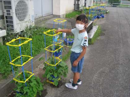 6月23日(水) 朝の様子 その1 公開日 2021/06/23 更新日 2021/06/23 1年生 朝顔もぐんぐん成長しています。水やりを頑張っているからですね。 先生の鉢にも水やりをしてくれています。 「先生、ちゃんと水をあげないとだめだよ。私が代わりにあげておいたよ。」としっかりものの子供たちです。 2年生は、収穫してきた野菜を机上において嬉しそうに眺めています。満足げです。