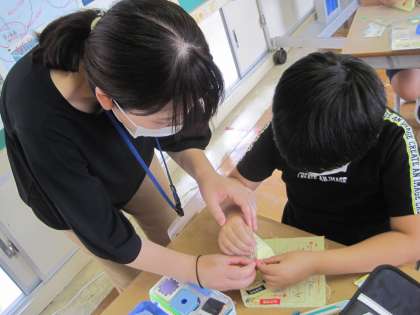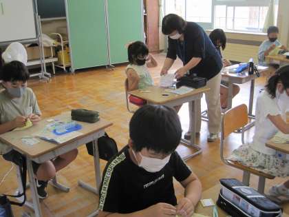 6月23日(水) 5年生 家庭科 ボタン付け 公開日 2021/06/23 更新日 2021/06/23 5年生 今日は、またステップアップし、ボタン付けにチャレンジしています。 ボタン付けが出来たら、次はいよいよミニポーチづくりです。