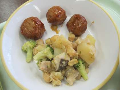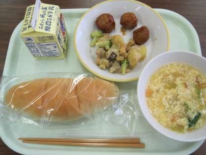 6月25日(金) 今日の給食は? 公開日 2021/06/25 更新日 2021/06/25 給食室 プールに入っていつも以上にお腹がペコペコです。 今日のメニューは、 1 米粉コッペパン 2 牛乳 3 ミートボール 4 ひよこ豆のオリーブオイル炒め 5 卵とレタスのスープ です。 給食によく登場し、給食ならではの豆といえば、「ひよこ豆」 形がひよこに似ているところから名前が付いたとそうです。ひよこに見えるかな。