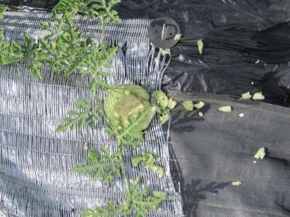 6月28日(月) 大ピンチ!スイカが・・・ 公開日 2021/06/28 更新日 2021/06/28 朝日小学校NEWS 学校農園の、なかよし班のスイカ畑にやっと実ったスイカが、何者かに食べられていました!!! カラスにしては、ダイナミックな食べ方、、、小動物?? 朝から大騒ぎです。