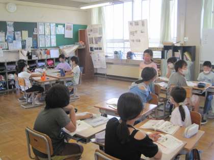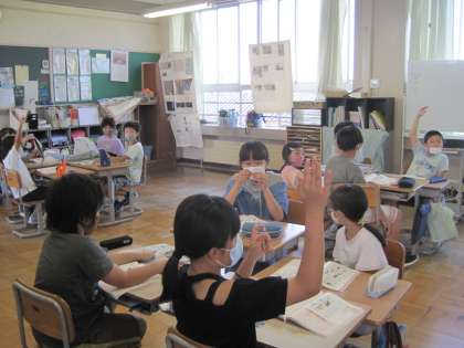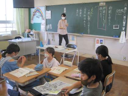6月28日(月) 4年生 国語科 新聞の特徴を見付けよう 公開日 2021/06/28 更新日 2021/06/28 4年生 実際に新聞を持ってきて、新聞の特徴を探っています。 日付が書いてある、見出しがある、、、そして、写真。写真の校歌については、「アップとルーズ」の単元で学習したので、それも活用しながら特徴を見付けています。