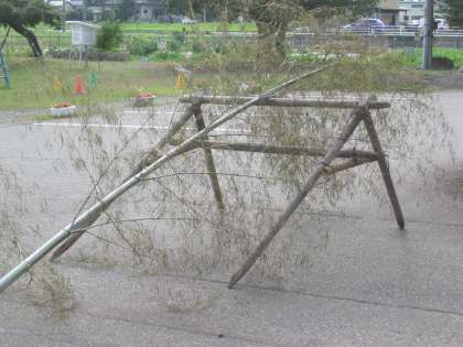 地域の方からいただいた立派な笹竹に短冊を付けたり、飾りを付けたりします。