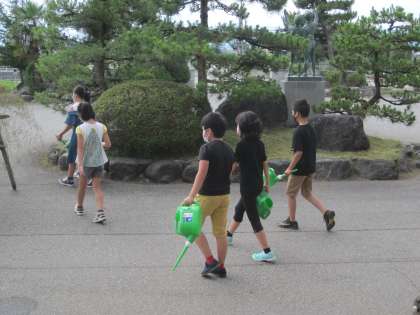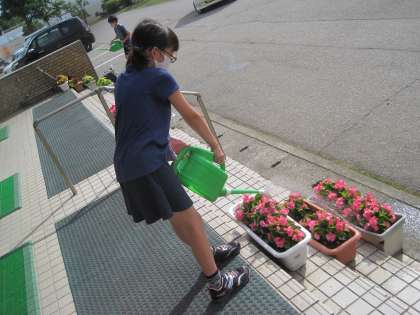7月1日(木) 朝の風景 公開日 2021/07/01 更新日 2021/07/01 朝日小学校NEWS 5・6年生が毎朝プランターの水やりをしてくれるので、最初の頃はまばらだった花も今ではモコモコに咲き誇っています。 なかよし班のスイカの水やりに出かけていきます。