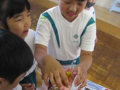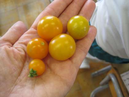 ミニトマトは次々と実ってくるので、「先生、あげる!」と次々とプレゼントしてくれました。