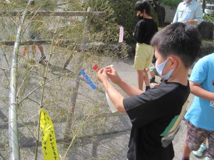 それぞれ、午前中のうちに笹竹に短冊や飾りを付けます。