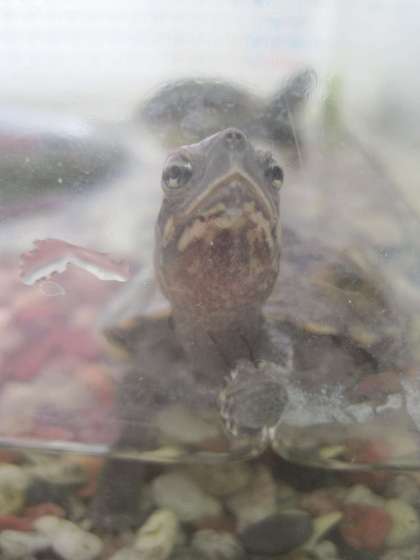 水そうの壁に近付き、外を眺めています。何かを訴えているようです。