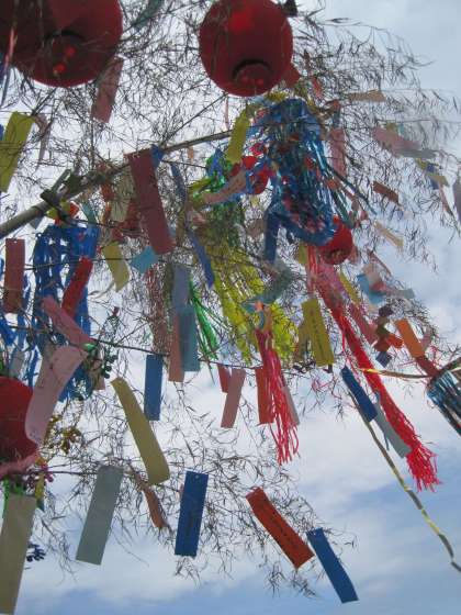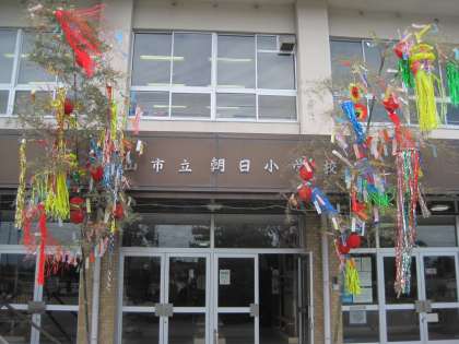 朝日っ子、教職員、保護者の方々、地域の方々の願いでいっぱいの七夕飾りが完成しました。