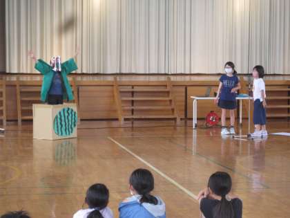 子供たちの手で月に1度、全校集会を企画・運営しています。