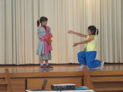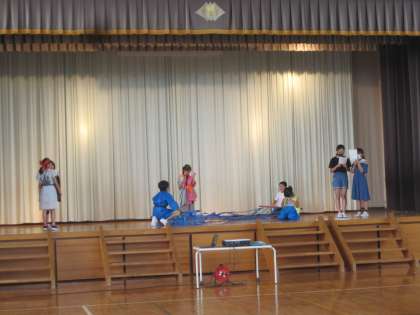 まずは、七夕の由来を劇で紹介しました。衣装も着けて本格的な劇です。