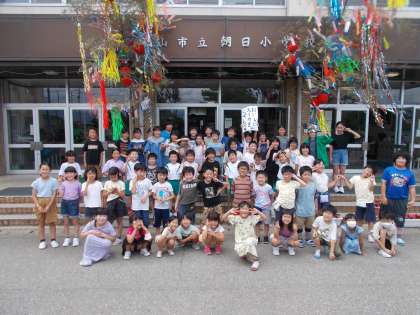 七夕飾りの前で全校で記念撮影をしました。