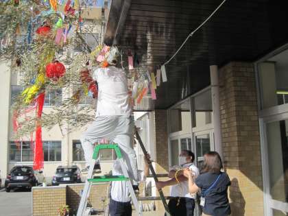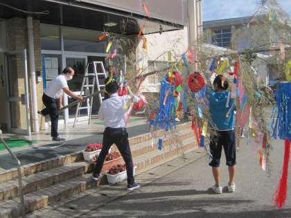 7月2日(金) 毎朝のルーティンに 公開日 2021/07/02 更新日 2021/07/02 朝日小学校NEWS 昨日、完成した七夕飾り。 毎日、朝日っ子が下校後、教職員で笹竹を下ろし、翌朝たてかけます。 終業式までのルーティンワークとなります。 意外に重たく、笹の葉や短冊が落ちてきたりするので教職員総動員です。 美しい七夕飾りには、たくさんの方々の思いと手助けが詰まっています。
