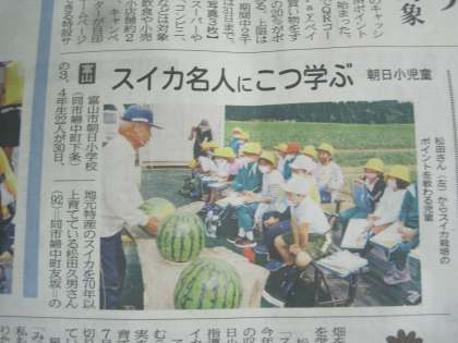 7月2日(金) またまた新聞に掲載されました! 公開日 2021/07/02 更新日 2021/07/02 朝日小学校NEWS 先日、3・4年生の「地域のスイカ名人さんの畑見学」の様子がテレビで放映されましたが、今度は北日本新聞朝刊に掲載されました。
