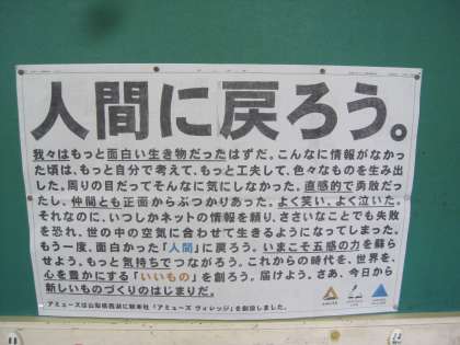 5・6年生教室に、「人間に戻ろう」という大きな記事が掲示してあります。
