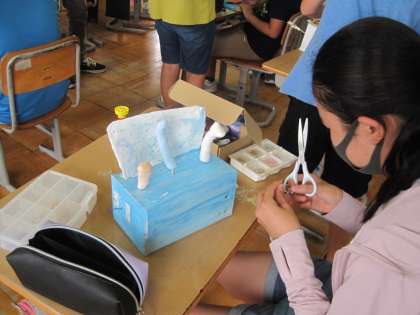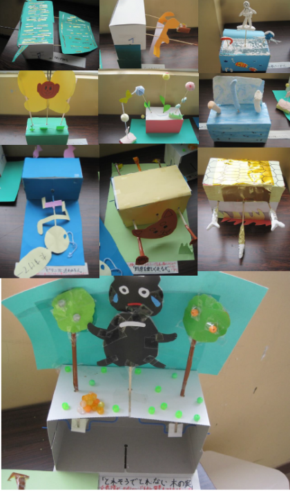 7月5日(月) 5・6年生 図画工作科 クルクルクランク 公開日 2021/07/05 更新日 2021/07/05 5年生 クルクルクランクが完成しました! 縦にしたり横にしたり、、、なるほど!と思う作品ばかりです。 タイトルも個性的です。