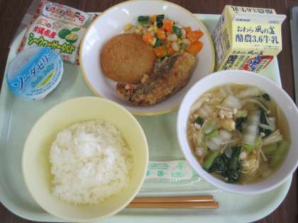 7月5日(月) 今日は選択献立 公開日 2021/07/05 更新日 2021/07/05 給食室 「選ぶ」ということはとても楽しいことですね。 今日は、ハムチーズフライか魚のカレーあげ、ソーダゼリーかシークワーサータルトのいずれかを選びます。究極の選択ですね。 1 ごはん 2 牛乳 3 ハムチーズフライ 又は 魚のカレーあげ 4 あまみそあえ 5 具だくさん汁 6 ソーダゼリー 又は シークワーサータルト です。