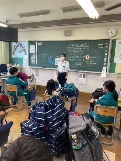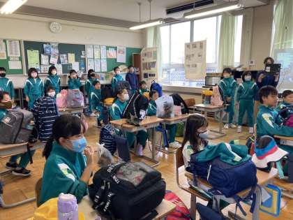 7月6日(火) 4・5年生 宿泊学習 オンライン出発式 公開日 2021/07/06 更新日 2021/07/06 学校行事 今日から待ちに待った宿泊学習です。 オンラインで出発式を行い、全校のみんなに見送ってもらいました。 みんなとってもワクワクしています。 活動は天候を見ながら行います。本日予定している登山も、所員の方のご意見を伺い、慎重に判断します。 どの活動になっても、みんなで協力して頑張りましょう。 行ってきます!