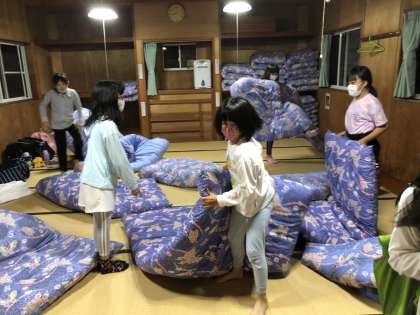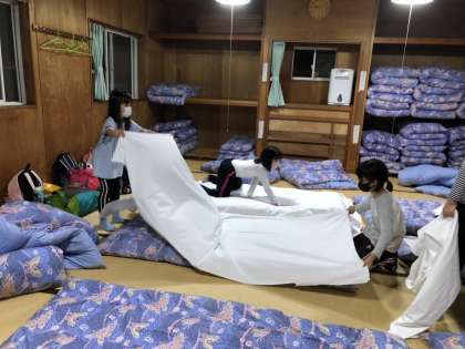 2人1組になり、協力し合って準備しています。