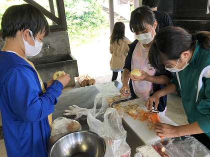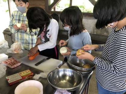野菜の皮を剥いたり、切ったり、、、厨房は大忙しです。