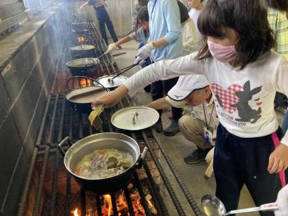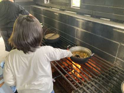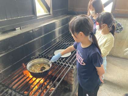 7月7日(水) 4、5年生 宿泊学習 肉、ルーを投入!