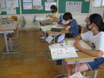 7月7日(水) 6年生 理科 植物のからだのはたらき 公開日 2021/07/07 更新日 2021/07/07 6年生 植物は水をどのように取り入れているのか、根から取り入れた水は植物の体のどこを通っていてどこに運ばれるのかを調べました。 食紅で色を付けた水につけておいたセロリの葉や茎の断面および側面を切り取り、解剖顕微鏡を使って観察しました。