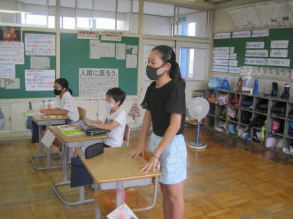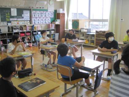 7月8日(木) 5・6年生 運動会についての話合い 公開日 2021/07/08 更新日 2021/07/08 5年生 今年の運動会は、全て子供たちの手でつくりあげます。 もちろん、競技種目も子供たちのアイディアに基づいて決めます。 ワクワクしながら話合いをしている5・6年生の様子です。6年生は、5年生が宿泊学習に行っている間に原案を考え、提示しました。