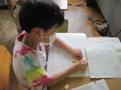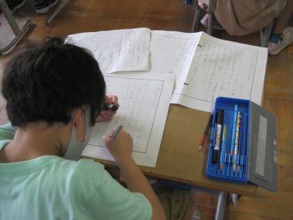 7月9日(金) 2年生 国語科 こんなものみつけたよ 公開日 2021/07/09 更新日 2021/07/09 2年生 昨日、学校の中で見付けた様々なものについて、文に書いて表しています。 はじめ、なか、終わりと文の構成に従って、段落をかえて書く学習です。 「中」の部分では、大きさ、手触り等も書いています。真剣に書く姿は作家のようです。