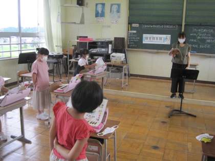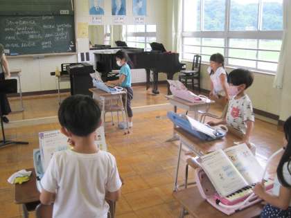 7月12日(月) 1年生 音楽科 ドレミファソの場所をおぼえよう 公開日 2021/07/12 更新日 2021/07/12 1年生 鍵盤ハーモニカの「ドレミファソ」の場所を覚えることがゴールです。 階名で歌ったり、鍵盤ハーモニカで弾いたりしながら、慣れ親しみ中です。
