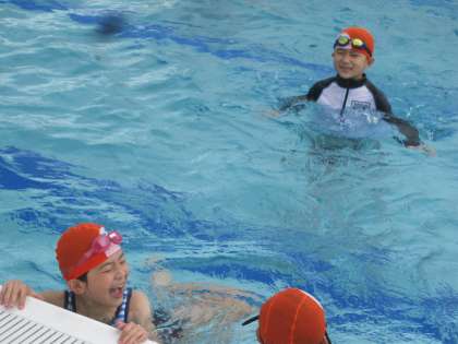 7月12日(月) 1・2年生 体育科 水泳学習 その2 公開日 2021/07/12 更新日 2021/07/12 2年生 ねことねずみに分かれて、先生が「ね・ね・ね・ねこ」と言ったら、ねこ役の子供が逃げて、ねずみが追いかけるという活動です。 楽しみながら、水に親しんでいます。はじける笑顔がまぶしいです。