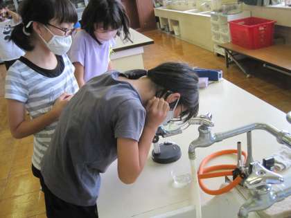 7月13日(火) 5年生 理科 魚のたんじょう 公開日 2021/07/13 更新日 2021/07/13 5年生 メダカの卵の成長の様子をかいぼう顕微鏡で観察しました。 子供たちは1週間前に採取した卵と3日前に採取した卵では、全く卵の中の様子が違うことにびっくりしていました。 一週間前に採取した卵の中を観察すると、メダカの赤ちゃんの心臓が動く様子を見ることが出来ました。